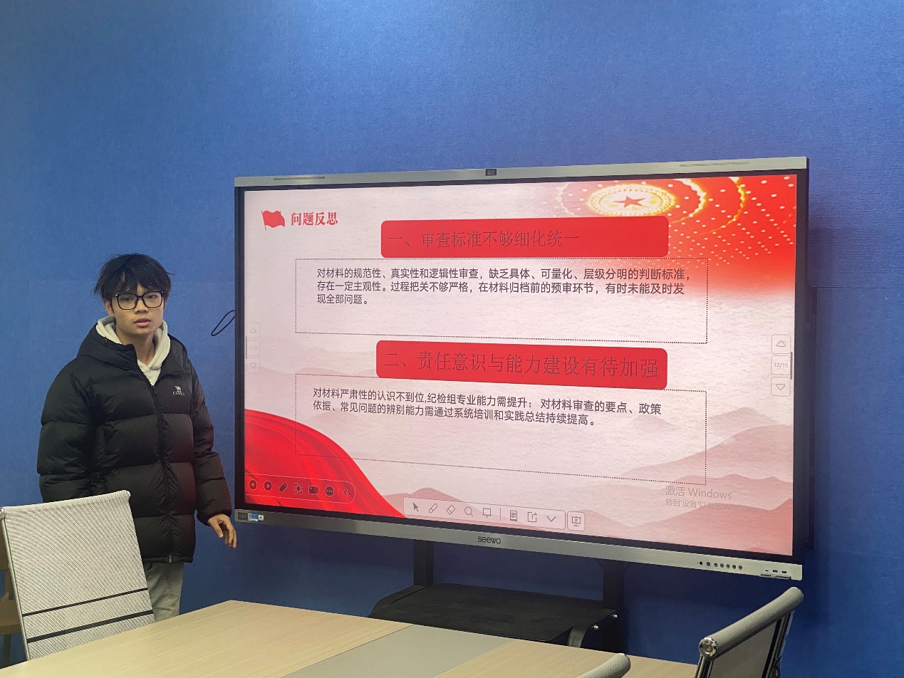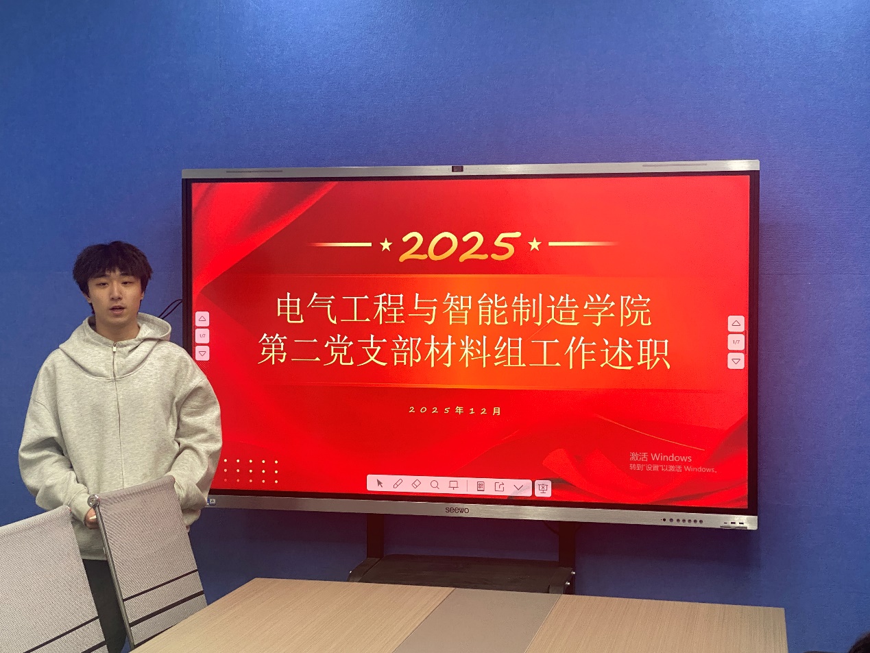 为进一步压实党支部各小组工作责任,检验阶段工作成效,明晰后续发展方向,切实提升基层党组织的凝聚力与战斗力,2025年12月29日晚,电气工程与智能制造学院学生第二党支部在四教312召开各党小组负责人述职会议。支部相关负责人参会,支部书记李玲霞听取各小组工作汇报,为推动支部党建工作提质增效凝聚共识、汇聚力量。 会议伊始,各小组负责人依次登台作述职汇报。他们立足岗位职责,从宣传工作、党员发展、党员档案检查、组织生活、实践活动、作用发挥载体等方面全面总结复盘,用数据和案例展示阶段工作成效。同时,大家坚持问题导向,深刻剖析了工作推进过程中存在的短板弱项,比如小组内部成员沟通不充分,各小组成员工作积极性欠缺,活动形式创新不足等,并结合实际提出了针对性的改进思路与努力方向。 (图1-6 各党小组负责人进行工作总结) (图8 李玲霞书记作会议总结) 此次述职会议的召开,不仅为各小组搭建了交流经验、查摆问题的平台,更实现了以述促改的目标。会议进一步梳理了各小组后续工作思路,压实了工作责任,为推动支部党建工作标准化、规范化建设注入了强劲动力。 (电气工程与智能制造学院 范俊杰/文 范俊杰/图)
