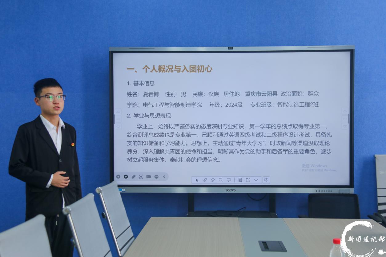 为严格规范团员发展程序,确保新发展团员的先进性与纯洁性,9月28日中午,电气工程与智能制造学院于四教303、312会议室同步开展2025年下半年发展团员考察会。学院团总支书记陈慧,团学指导老师何沁遥、陈正丽、田丽、刘伟、代生婷担任评审人,对入团发展对象进行全面考察。 (评审老师) 本次考察会严格遵循发展团员工作规范,经过前期培养考察、团校学习等环节遴选的发展对象依次亮相。考察过程中,候选人围绕对共青团的认识、入团动机、思想政治学习情况、学业成绩、志愿服务经历及未来规划等方面进行汇报,真诚展现了向团组织靠拢的坚定决心与自身综合素养。 (部分参与答辩学生) 评审老师们结合候选人汇报内容,从政治理论认知、模范带头作用发挥、应对实际问题能力等维度进行针对性提问,深入了解其思想动态与现实表现,并依据团员先进性评价标准进行综合考量。 学院团总支书记陈慧在总结中说到,发展新团员是共青团建设的基础性工作,必须坚持把政治标准放在首位。她对候选人的积极表现给予肯定,同时希望拟发展团员进一步强化责任意识,在学习科研与集体生活中发挥先锋模范作用,以实际行动践行共青团员的使命担当。 (评审老师总结) 此次考察会的顺利召开,不仅规范了学院团员发展流程,更加强了对青年学生的思想引领。一批优秀青年即将加入共青团组织,为学院团组织建设注入蓬勃生机,为培养堪当民族复兴大任的时代新人奠定坚实基础。 文字:李佳乐 李远阳 图片:李佳乐 李远阳 编辑:黄高涛 初审:盛一凡 终审:徐源