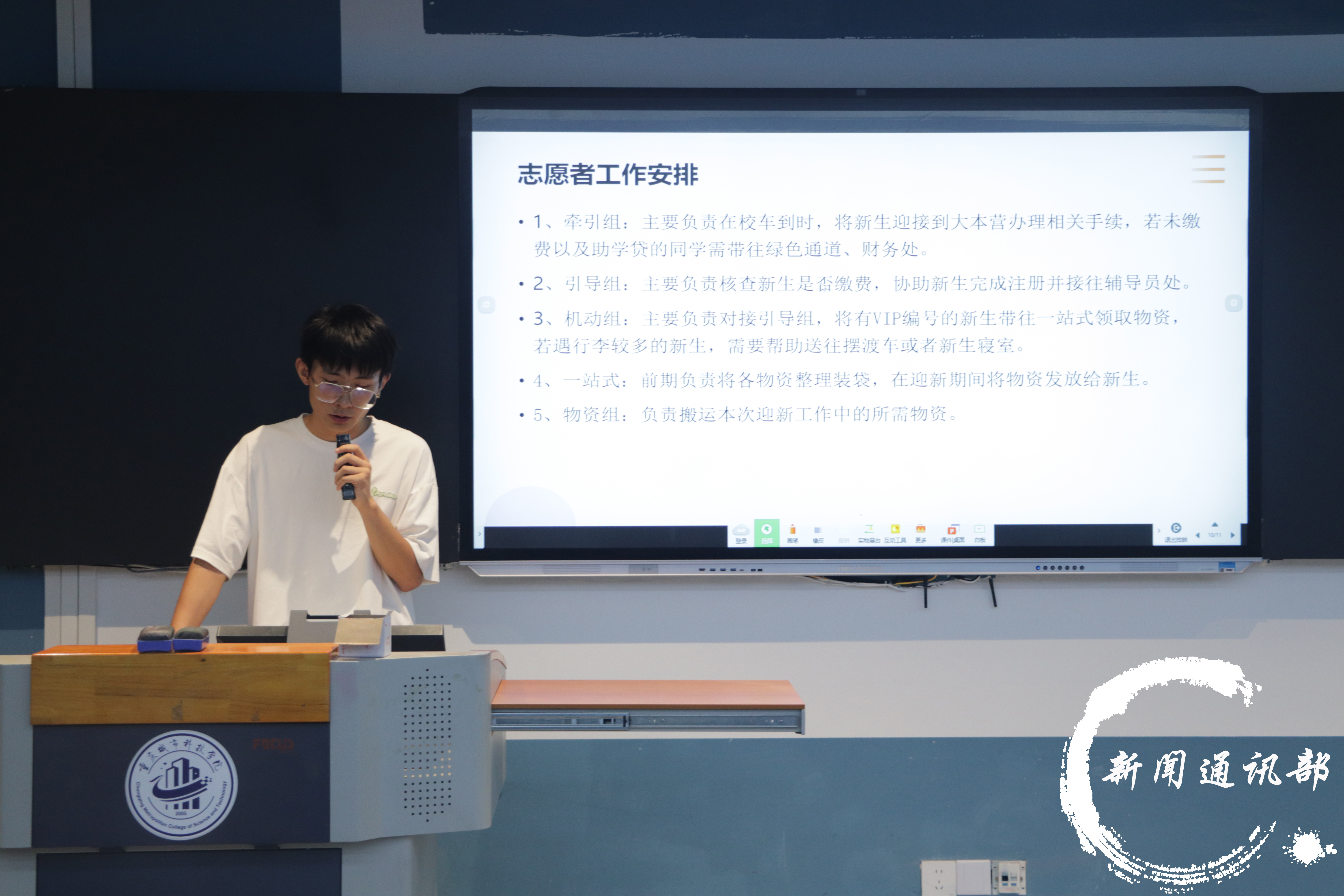 夏末的余温尚未散去,校园里迎新筹备的氛围已愈发浓厚。为高质量推进2025级新生迎新工作,全面提升工作人员服务水平,8月31日,电气工程与智能制造学院在5教102教室召开迎新动员大会暨培训会。党总支组织委员徐源、团总支书记陈慧、团学指导老师陈正丽及全体迎新志愿者参会,大会由杨佳松同学主持。 (杨佳松同学讲述工作安排) 据统计,我院2025级将迎来专升本新生1490人、普通本科新生1135人。动员会上,杨佳松同学首先为志愿者们详细梳理了新生报到流程,明确各岗位具体职责与时间节点要求,并结合清晰的流程图示和实际案例展开说明,帮助大家直观理解迎新工作要点。 (陈慧老师做动员讲话) 随后,陈慧老师结合杨佳松同学讲解的迎新安排作动员讲话。她明确要求各个小组厘清分工、落实职责,确保报到各环节衔接有序。同时着重叮嘱志愿者们,要做到及时响应,要以热情且专业的态度迎接每一位新生,若遇特殊情况需第一时间向老师反馈并妥善处理,全力争取迎新工作细节零纰漏。 (徐源老师作总结讲话) 会议最后,徐源老师作总结讲话。她对全体迎新志愿者提出要求与期许,希望大家以高度的责任感和使命感投入工作,充分展现学院良好精神风貌,为新生及家长提供暖心高效的服务,让新生切实感受到学院的关怀与温暖,顺利开启大学生活新篇章。 (会议全貌) 集结力量待新程,同心共赴新篇章。新生入学工作的号角已然吹响,此次动员大会暨培训会为新生入学工作筑牢了坚实根基。相信在全体志愿者的齐心努力下,2025年新生入学工作定能平稳推进,为新生们的大学之旅绘就温暖且明亮的开篇。 文字:李远阳 图片: 邓其其、唐宗波 编辑:陈星羽 初审:谢欣妤 终审:徐源
