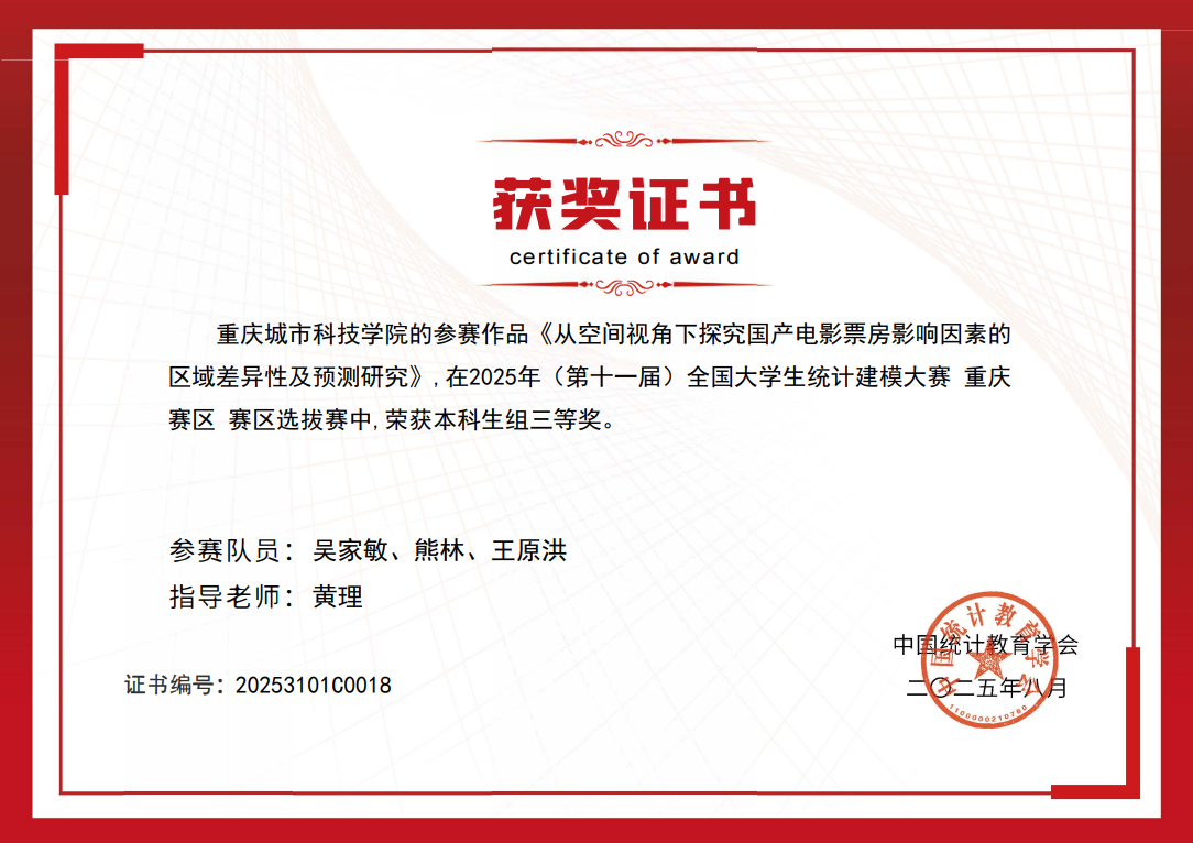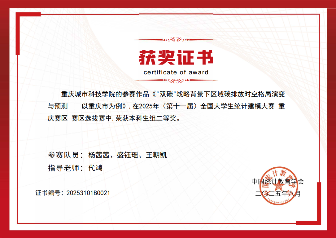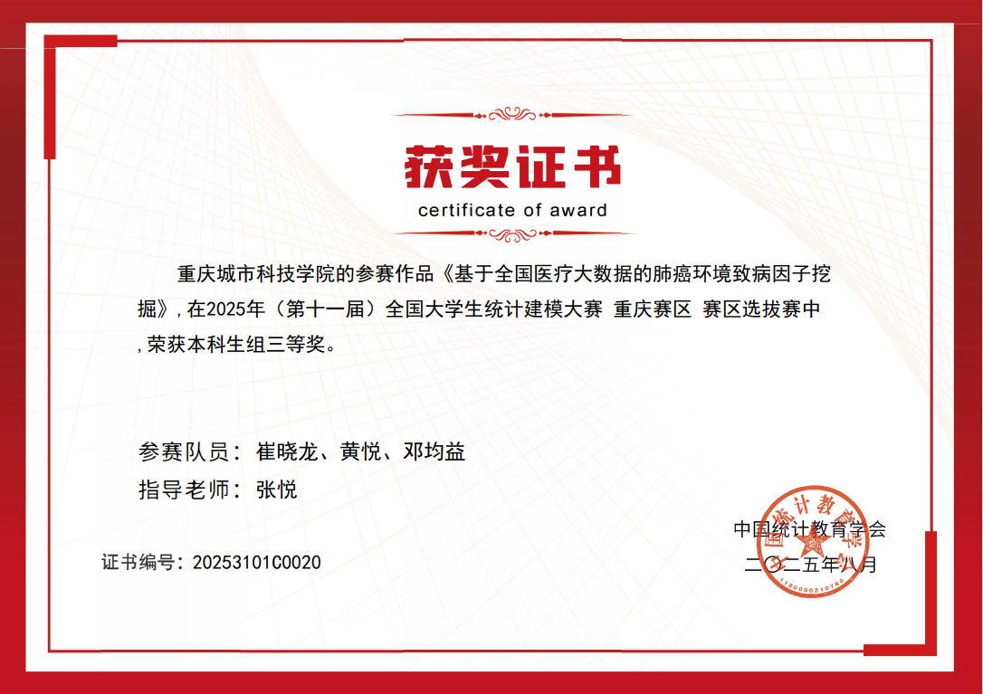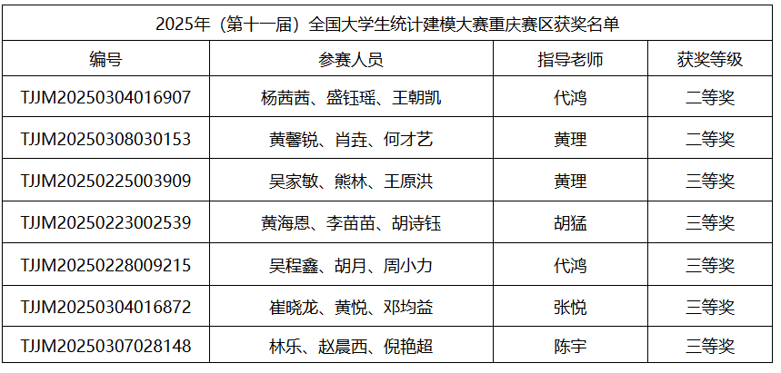喜报 | 重庆城科学子在第十一届全国大学生统计建模大赛中勇创佳绩