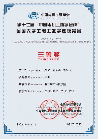 近日,第十七届“电工杯”全国大学生电工数学建模竞赛获奖名单正式公布。我校学子在本次竞赛中表现优异,共荣获全国二等奖3项、三等奖6项,充分展现了我校学生在数学建模方面的扎实功底与创新能力,也反映出学校在学科竞赛方面的培养成效。 我校参赛队伍在比赛中展现出优秀的跨学科协作与解决复杂工程问题的能力,这得益于学校近年来在跨学科教育体系构建与创新能力培养方面的持续投入。通过组建多学科背景的指导教师团队,学校积极激发学生的创新潜能,提升其竞赛实战水平,全面助力学生成长成才。此次优异表现,充分印证了我校在高素质应用型人才培养方面的实践成果。展望未来,我校将进一步深化“以赛促教、以赛促学”的育人机制,不断加强专业能力建设,稳步提升人才培养质量。 文字:刘玉锋 代鸿 编辑:黄高涛 初审:谢欣妤 终审:徐源