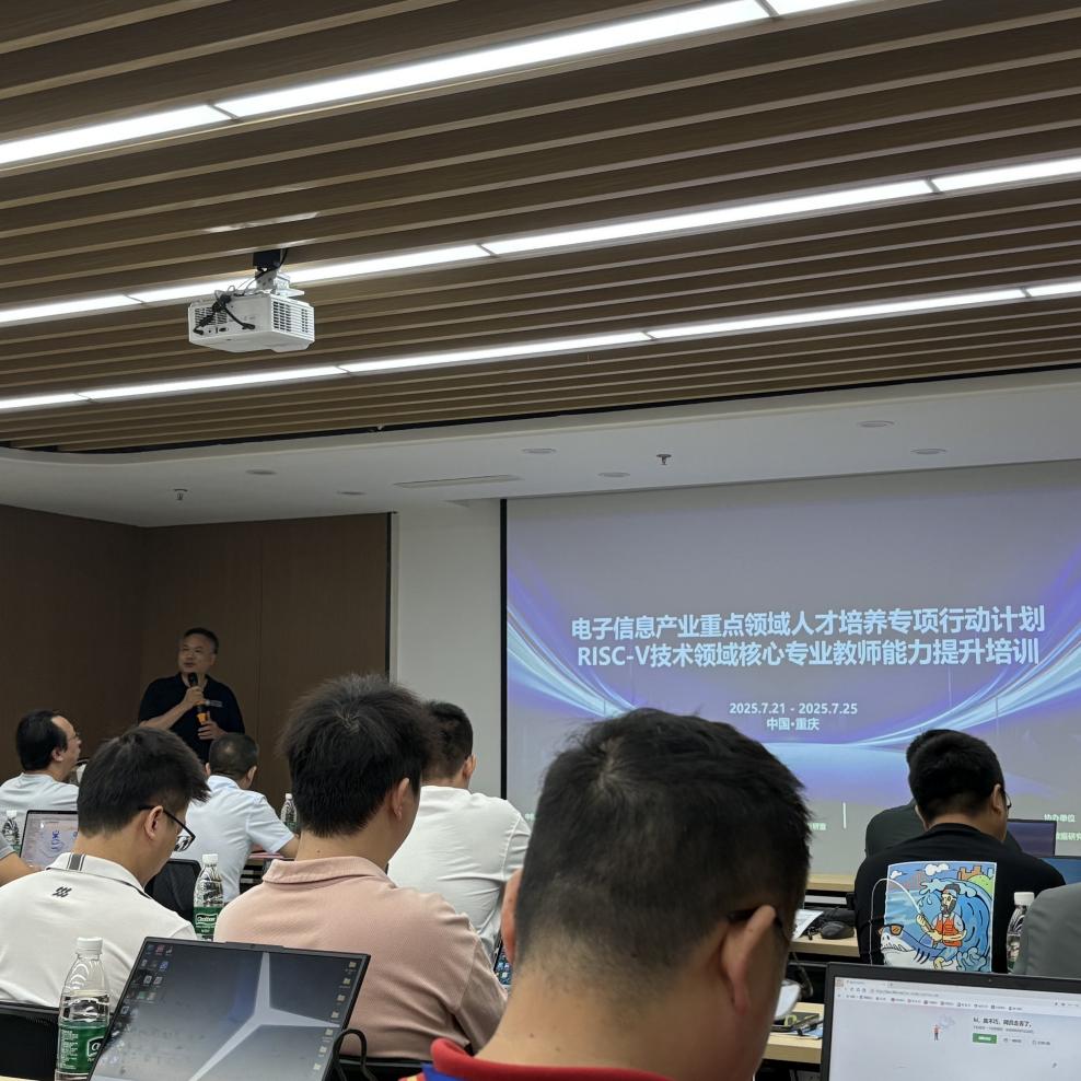 在当今集成电路产业飞速发展的背景下,RISC-V作为开源指令集架构的新星,正逐渐成为处理器设计领域的重要力量。为了提升学院教师集成电路技术领域的教学和科研能力,在绿智制造产业学院的大力支持下,重庆城市科技学院电气工程与智能制造学院电子信息工程系教师李立、贺宜平于2025年7月20日至 7月25日前往重庆市集成电路协同创新中心,参加了为期六天的 RISC-V 技术领域核心专业教师能力提升培训。