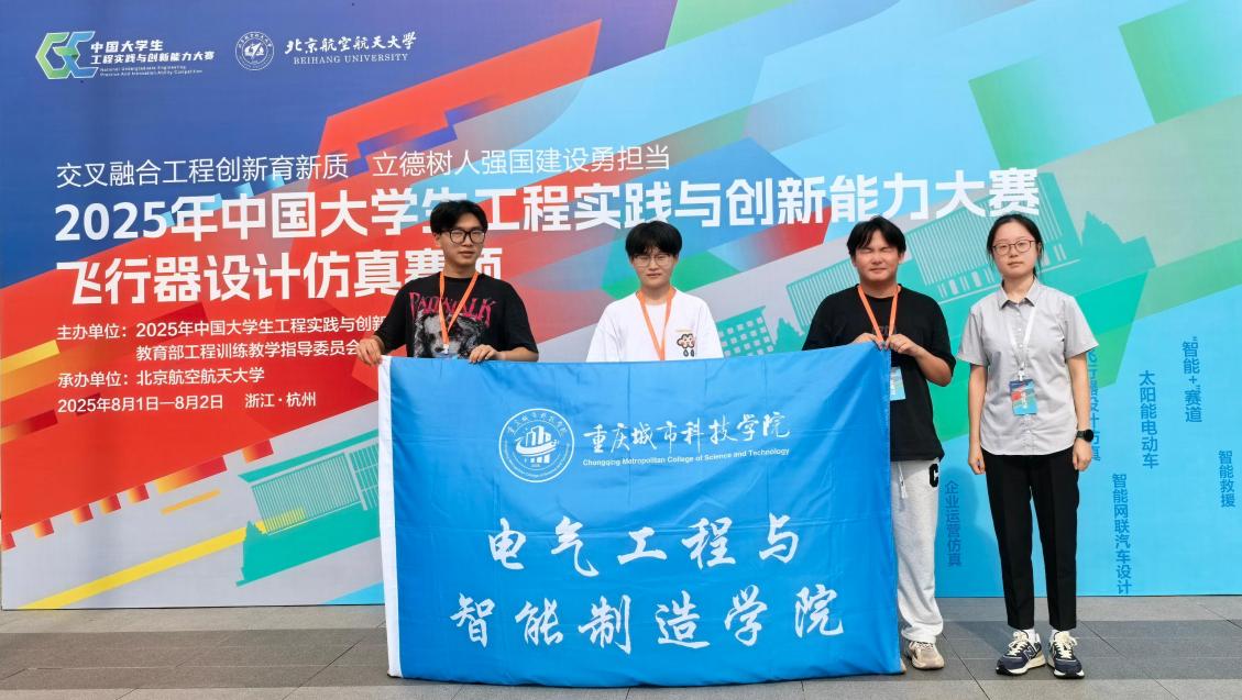 8月2日,2025年中国大学生工程实践与创新能力大赛飞行器设计仿真赛项决赛在北京航空航天大学杭州国际创新研究院成功举办。本届大赛由教育部高等学校工程训练教学指导委员会主办,北京航空航天大学承办。赛事共吸引了来自全国30个省、自治区、直辖市的近300所高校的3000余支团队参赛,最终79所高校94支团队晋级全国决赛。重庆城市科技学院电气工程与智能制造学院的参赛队伍,在飞行器设计仿真赛项中表现卓越,经由北航及赛方组委会组织的“校—省—国”三级赛制,与来自全国各地选手同台竞技,以重庆市季军成绩晋级国赛,在飞行路线与作战策略的不断调整优化之下,历经数月练习,最终在北航的国赛现场打破队伍历史成绩,一举列入“协同对抗”飞行任务全国八强。 ✈赛场竞技:无畏挑战,绽放光芒 中国大学生工程实践与创新能力大赛作为教育部官方认可的极具含金量与参赛价值的A类赛事,其中的飞行器设计仿真赛项,吸引了来自全国众多高校的三千多支队伍、上万名参赛选手踊跃参与,我校学子唐鹏、赵宝印、刘畅面临着激烈的竞争与高难度的挑战。从方案设计、路线规划到模拟测试,每一个环节都需要经过反复的分析与训练。在比赛现场,他们以沉着冷静的心态和扎实的训练经验,有条不紊地完成航空救援与协同对抗任务。面对突发问题,迅速做出调整,展现出了强大的应变能力与竞技精神,在众多参赛队伍中脱颖而出,并晋级协同对抗任务全国八强巅峰对决赛。 ✈团队合作:众志成城,巅峰对抗 经省赛季军险胜晋级后,在后期备赛过程中,团队指导教师针对比赛要求和学生各自特长,制定了详细的培训计划。从赛项体系规则认知的深化到赛项任务的训练,从创新思维的启发到团队协作的磨合,两位指导老师都给予了全方位的指导。师生共同探讨问题、攻克难关,开展头脑风暴,相互答疑解惑、加油鼓劲,将团队的每一个成员当作坚实的后盾,为最后在赛场上的出色发挥提供了有力的保障。 ✈展望未来:砥砺前行,再续辉煌 本次大赛突出面向低空经济和国防建设等国家重大需求的飞行器设计与运用创新,为参赛师生搭建了科技创新与实践研究的交流平台,有效锤炼了他们解决复杂实践问题的综合职业素养,同时增进了学校与高水平本科院校及兄弟院校的交流学习与经验互鉴,进一步扩大了学校的知名度和社会影响力。展望未来,学校将继续秉承“厚德、博学、求是、创新”的办学理念,鼓励更多学生投身专业竞赛和创新实践,致力于培养更多高层次、高素质、高技能的优秀人才。 图:刘畅 唐鹏 赵宝印 文:刘余 史丙君 编辑:朱紫俊 初审:谢欣妤 终审:徐源