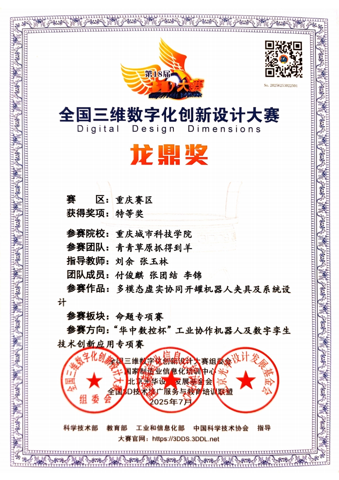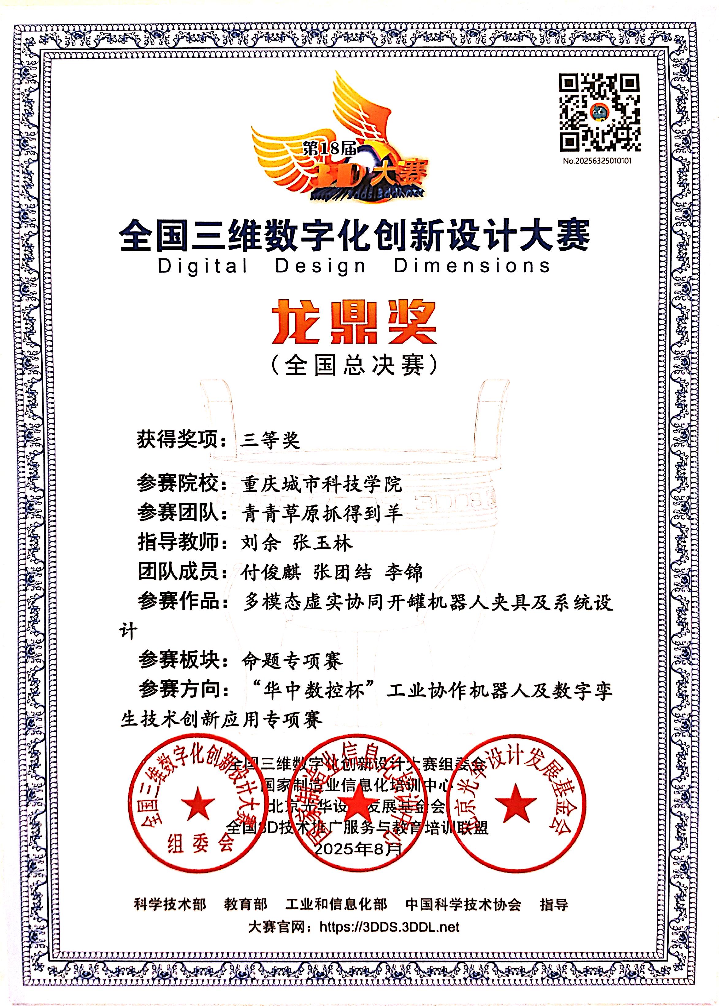 近日,第17届全国三维数字化创新设计大赛“华中数控杯”工业协作机器人及数字孪生技术创新应用专项赛全国总决赛于厦门理工学院大学圆满落幕。全国三维数字化创新设计大赛(简称“全国3D大赛”)是在国家大力实施创新驱动发展战略、推动实体经济和数字经济融合发展的时代背景下开展的一项大型公益赛事。大赛受科技部、教育部、工业和信息化部、中国科学技术协会等部门共同指导,已被列入《全国高校学科评估体系》以及中国高等教育学会的高校竞赛排行榜。 此次“华中数控杯”工业协作机器人及数字孪生技术创新应用专项赛吸引了全国150多所高校积极参与,竞赛对象涵盖全日制研究生组、本科生组和高职组。赛项主要考察选手对工业协作机器人、PLC可编程控制器、机器视觉等设备的安装、编程、调试、集成应用等能力,以真实的工业装备和应用环境作为赛场,全面检验大学生解决机器人领域复杂工程问题的综合能力。这一赛事对于学生考研面试加分、出国背景提升等都有积极作用,也是众多高校认可的学生重大创新创业成果。 在省赛阶段,重庆城市科技学院电气工程与智能制造学院共派出6支队伍参赛。经过激烈角逐,所有队伍均获佳绩:其中1支队伍获特等奖、2支队伍获一等奖,2支队伍获二等奖,1支队伍获三等奖。获得特等奖的队伍代表学校晋级全国总决赛,与来自哈尔滨工业大学、华中科技大学、北京理工大学、北京航空航天大学、复旦大学、电子科技大学等145支全国高校队伍同台竞技。最终,该校学子凭借扎实的专业知识和出色的现场表现,荣获全国总决赛龙鼎奖三等奖。 获奖的背后,是参赛师生数月来的辛勤付出和不懈努力。在备赛期间,学生们放弃休息时间,经常为了优化一个参数或攻克一个技术难题奋斗到深夜。指导老师们全程跟进,从机器人夹具创新设计、编程控制到机器视觉应用、三维建模与数字孪生系统调试,都给予了细致指导。比赛过程中,城科学子沉着应对现场操作的高要求与答辩环节的专业质询,其作品在功能性、创新性和实用性方面的突出优势赢得了评委的一致好评。 此次全国三维数字化创新设计大赛不仅展示了重庆城市科技学院在智能制造领域的教学成果,也体现了学校“以赛促学、以赛促教”理念的成功实践。我院将继续深化教育教学改革,培养更多适应新时代需求的高素质人才,为国家制造业转型升级输送更多技术型、应用型、复合型人才,为科技强国建设贡献更多力量。 文字:张团结 图片:李锦 付俊麒 编辑:陈星羽 初审:谢欣妤 终审:徐源