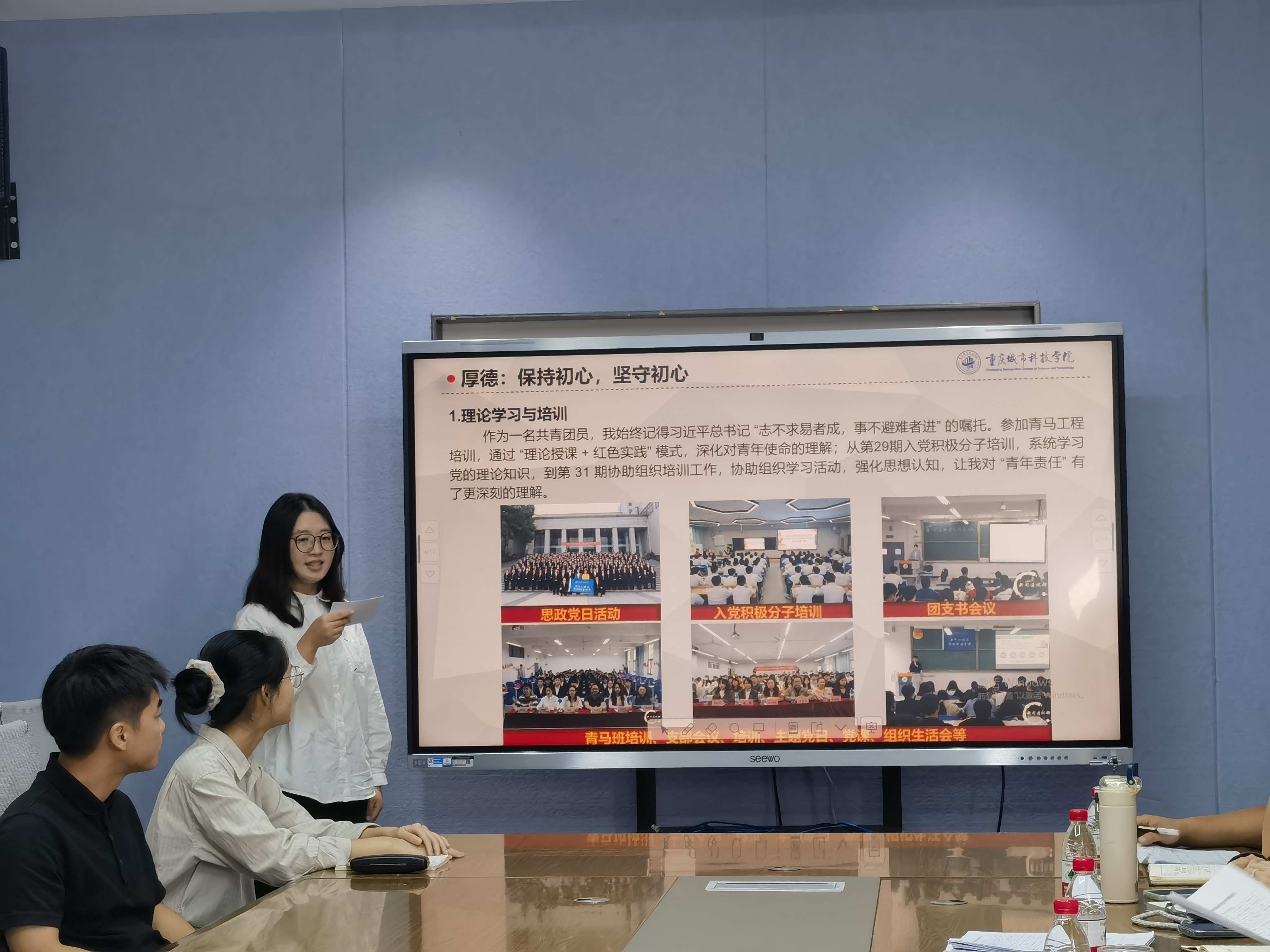 经过个人自主申报、学院评审小组初步审核材料等环节,最终有9名优秀学生脱颖而出,进入现场答辩环节。答辩过程中,9位候选人按照抽签顺序依次登场,围绕思想品德修养、学业成绩表现、学科竞赛成果、实习实践经历、志愿服务贡献及综合素质提升等方面,结合自身成长故事,生动讲述了在求学路上的奋斗历程与收获感悟。他们或分享攻克学术难题的坚持,或畅谈参与社会实践的思考,展现出电气学子积极向上、勇于探索的青春风貌。答辩结束后,评委团结合候选人的书面材料与现场表现,从专业素养、表达能力、综合潜力等维度进行提问与打分,确保评审结果客观公正。