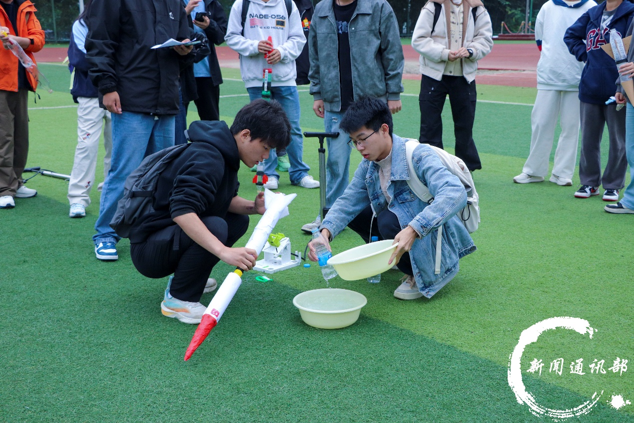 秋风送爽,热情不减!我们怀着同样激动的心情,再次齐聚操场,共同迎接“水火箭”科技竞赛第二天的精彩赛程! 水火箭,看似小巧,却凝聚着科学的奥秘与创意的火花,是动手能力的直观展现,更是少年们探索未知、追逐梦想的载体。水火箭腾空而起,那直冲云霄的身影,不仅是科技力量的彰显,更是青春活力的绽放。我们在实践中感受科学的魅力,在合作中收获成长的快乐。 (选手风采) 水火箭比赛虽已落幕,但科学的种子已随火箭升空,深深植根于学子心中。它点燃的不仅是青春的激情,更是对未知世界永恒的好奇与探索欲。比赛置换,同学们将带着这份科创精神走向更广阔的未来。 文字:雷明月 图片:邓其其 荣泽文 编辑:黄高涛 初审:盛一凡 终审:徐源