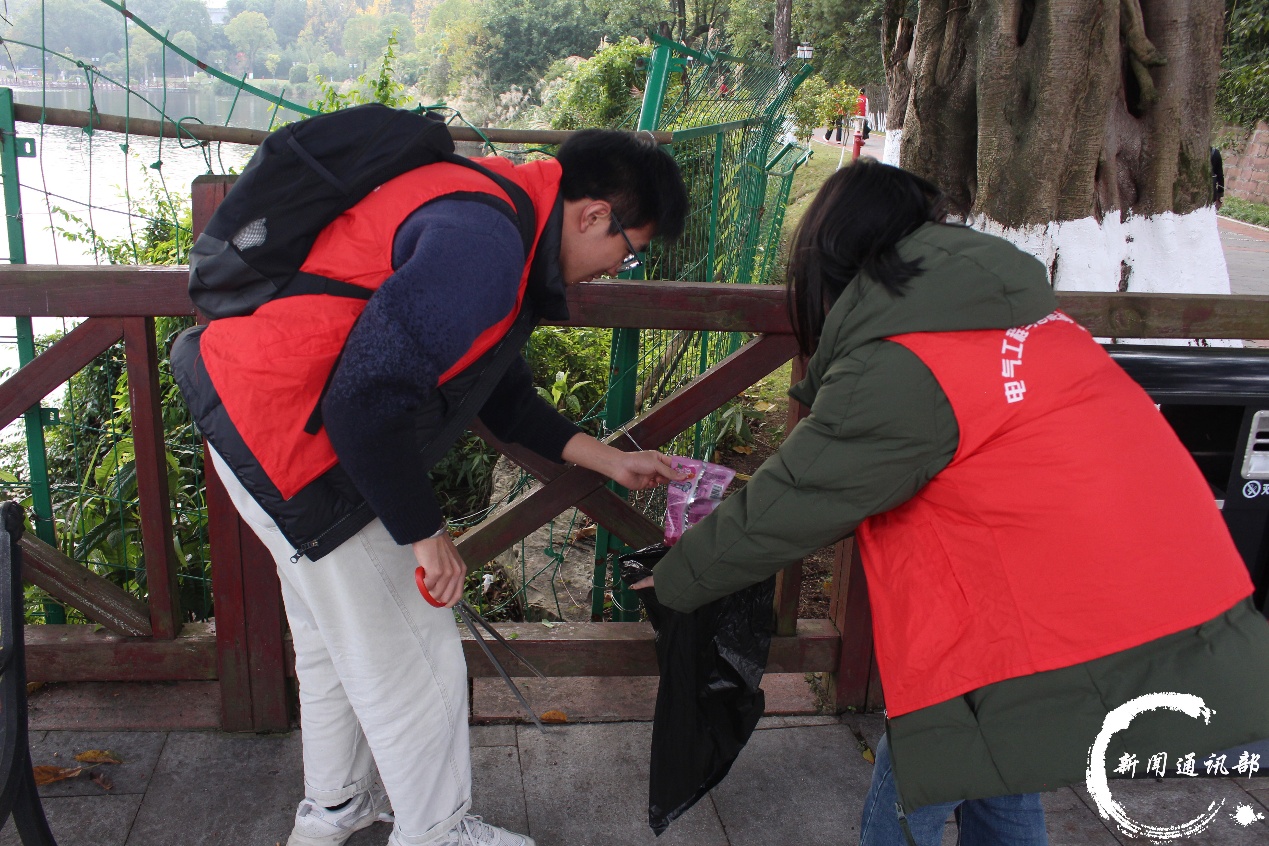 为响应党中央关于加强生态保护、推进绿色发展的决策部署,助力生态文明建设,11月26日,电气工程与智能制造学院主办、学院团总支·学生会承办的“洁小青”志愿活动顺利开展。此次活动以“以青之名,赴洁之约”为主题,通过组织电气工程与智能制造学院志愿者参与爱林护林志愿服务,引导青年争做生态保护的参与者、监督者和宣传者,共同守护绿色家园。 活动当天,志愿者们身着统一的马甲,他们手持夹钳和垃圾袋,精神抖擞地抵达了神女湖园区。抵达后,大家迅速分成小组,脸上洋溢着专注而认真的神情,开始了细致的清理工作。他们俯身弯腰,目光如炬,仔细搜寻着步道两旁草丛、石缝里的每一个角落,不放过任何一片被遗落的烟头、塑料袋或饮料瓶。在清理的同时,几位志愿者还在为行人耐心地讲解着垃圾分类的知识和减少使用一次性用品的重要性。这些年轻的身影,在神女湖畔构成了一道流动的、充满活力的风景线,他们用行动诠释了新时代青年的责任与担当。 (志愿者清理垃圾) 本次“洁小青”志愿活动不仅丰富了同学们的课余生活,提供了宝贵的社会实践机会,更强化了青年学生的社会责任感和环保意识。未来电气工程与智能制造学院将持续深化生态文明教育,常态化开展此类志愿服务活动,积极营造“人人关心环保、人人参与环保”的校园氛围,为建设美丽中国贡献青春力量。 (合影) 文字:邓海焱 图片:冉润芝 刘爱萍 编辑:牟炳糠 初审:盛一凡 终审:徐源