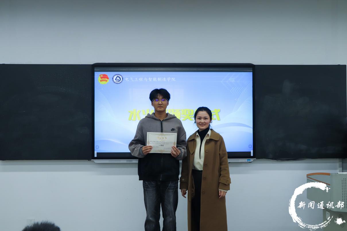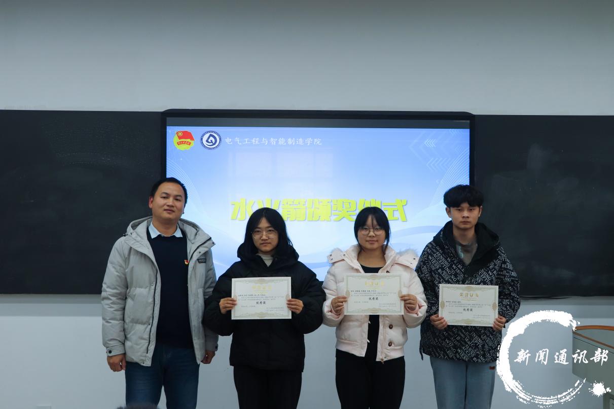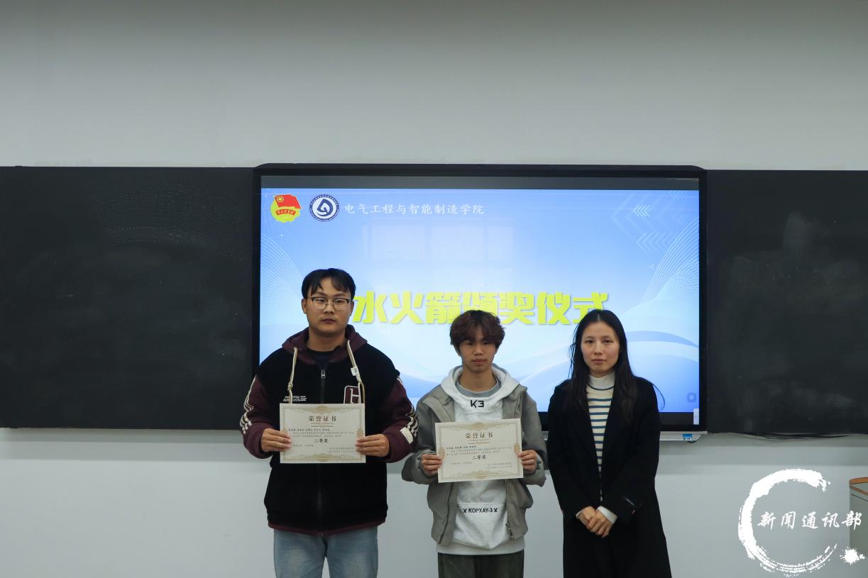 为激发大学生的创新实践能力,提升科技素养,电气工程与智能制造学院于11月26日下午四点半在第五教学楼214教室成功举办“水火箭”科技竞赛颁奖仪式。学院党总支副书记李宇、副院长张玉林、学生第二党支部书记李玲霞、团总支书记陈慧、团学指导老师田丽与刘伟,以及辅导员代表陈永华出席活动。 (主持人) (到场嘉宾) 本次“水火箭”科技竞赛自启动以来,吸引了众多同学的积极响应与参与。历经报名、制作与现场竞赛多个环节,参赛选手们在赛场上呈现了一场融合专业性与趣味性的科技盛宴,充分展现了同学们的创造潜能与动手能力,进一步弘扬了绿色、低碳、环保的科技理念。 颁奖现场,李宇书记为获一等奖获奖团队颁发奖状跟奖品,陈慧老师,李玲霞,陈永华老师分别为获二等奖、三等奖、优秀奖的团队颁奖;进阶赛道中,张玉林院长也为获一等奖的团队颁发奖状跟奖品,田丽老师,刘伟老师则分别为获二等奖、三等奖的队伍依次颁发荣誉。最后,所有到场嘉宾与获奖学生共同合影留念,定格了本次科技竞赛的精彩瞬间。 (基础赛道获奖队伍) (进阶赛道获奖队伍) 此次“水火箭”科技竞赛不仅为学生搭建了展示创新才能的舞台,更以生动实践传承了“芯”火相传的科创精神,营造了浓厚的校园科技文化氛围。活动进一步推动了科教融合与学风建设,为培养高素质、应用型人才注入源源不断的科技动能,也为学院的创新发展增添了新的活力与内涵。 (合影留念) 文字:雷明月 张湘缘 图片:祖渝恒 编辑:张兵 初审:盛一凡 终审:徐源