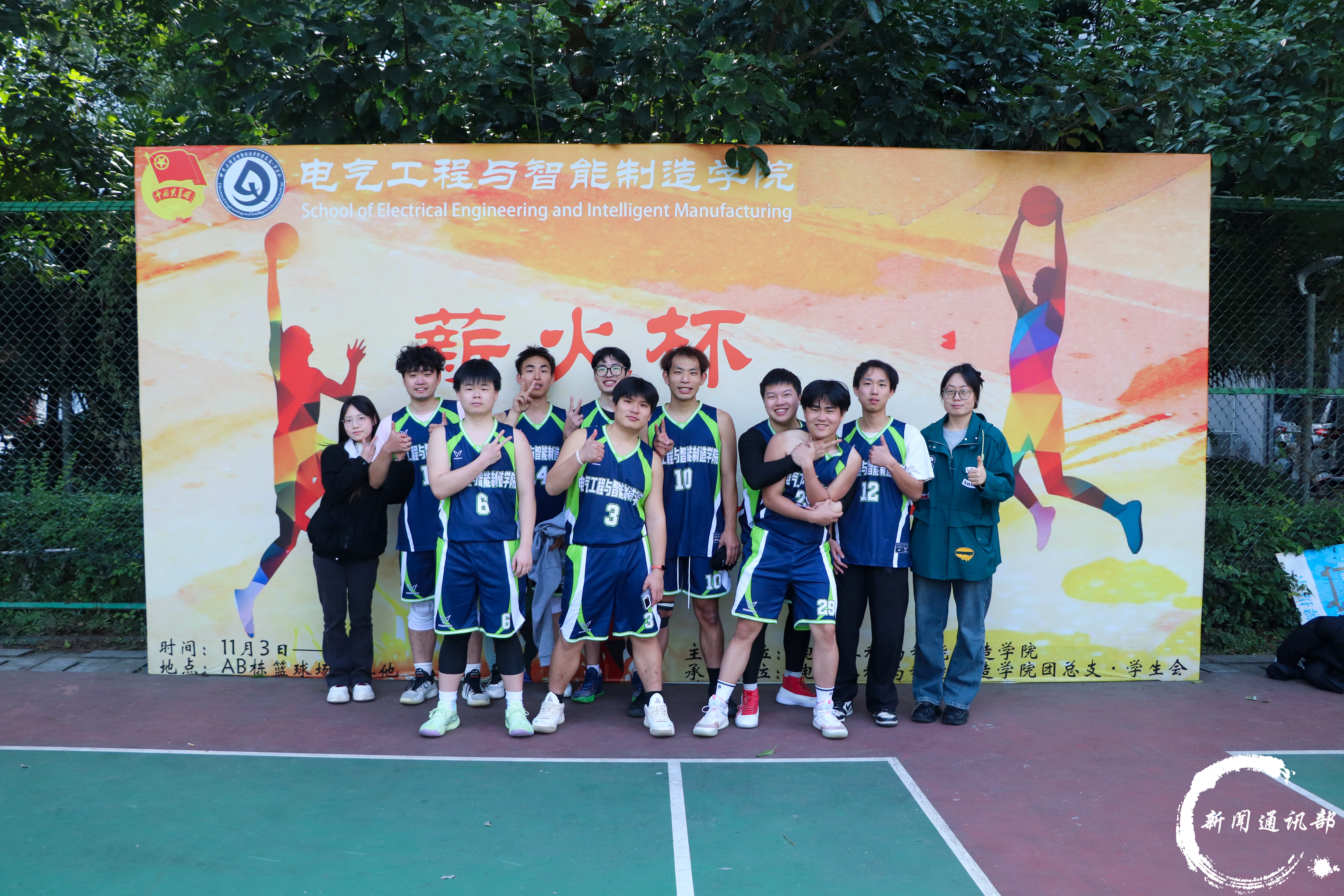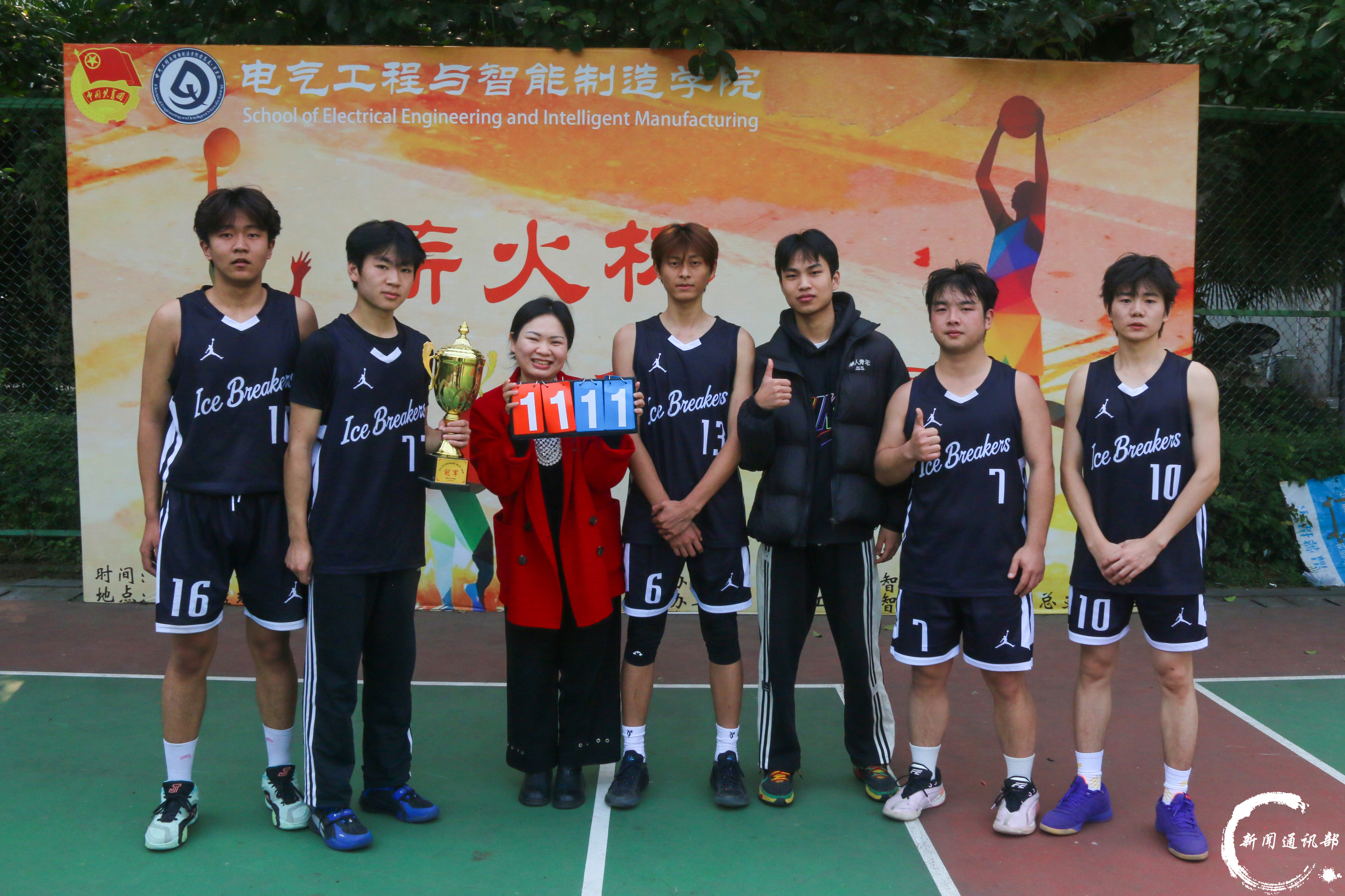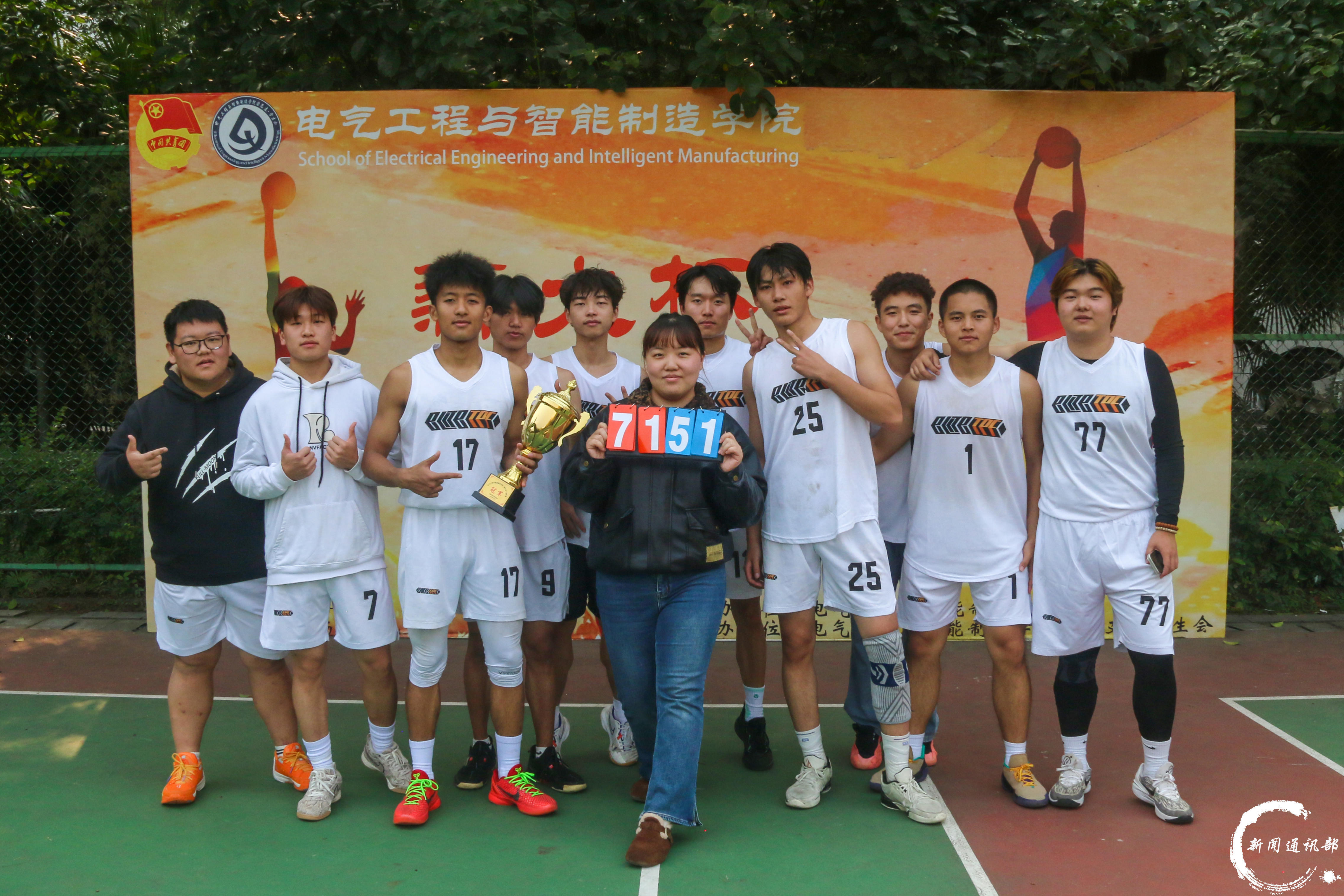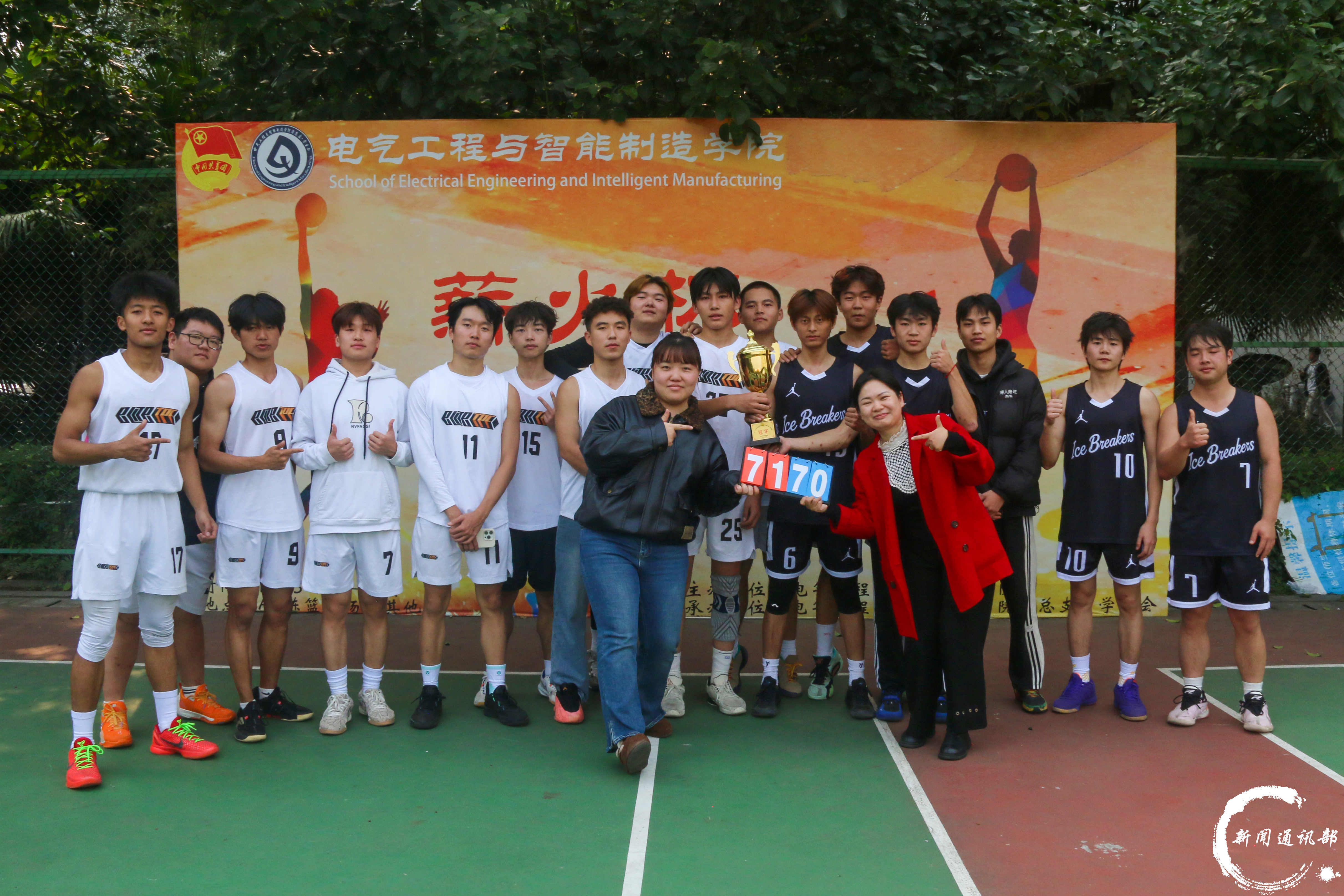 青春逐梦,篮不住热血与热爱;薪火相传,赛场上定格拼搏瞬间。为迎接新生到来、丰富校园文化生活、增强师生凝聚力,电气工程与智能制造学院“薪火杯”篮球赛历经多轮激烈角逐,11月28日,甲,乙两组决赛在学校h栋篮球场正式打响。甲组第一梯队,elite队;乙组通通肘走队,跟党走就队共四支队伍进入决赛。 当篮球撞击地板的节奏遇上青春的呐喊,当竞技的激情碰撞团结的力量, “第一梯队”与“Elite队”两支劲旅同台竞技,以精湛球技与顽强斗志,为全场观众呈现了一场酣畅淋漓的巅峰对决。决赛现场,双方队员迅速进入状态,防守,突破,传球,投篮一气呵成。“第一梯队”配合默契、攻势迅猛,凭借精准的外线投射与犀利的内线强攻掌控节奏;“Elite队”则稳扎稳打、防守严密,以灵活的战术调整与顽强的反扑紧咬比分。最终,Elite队以71:51比分取得甲组冠军。 (Elite队合照) (第一梯队合照) (大合照) (甲组决赛现场) “通通肘走队”与“跟党走就队”呈现了一场精彩绝伦的竞技盛宴。比赛伊始,两队迅速进入状态,在攻防两端均展现出高强度对抗。“通通肘走队”凭借出色的身体素质和极具冲击力的战略首先发起攻击;“跟党走就队”则依靠严密的战术纪律与流畅的整体配合予以回应。赛事进程波澜起伏,双方比分交替上升,场面一度呈胶着状态。经过激烈角逐,最终,“跟党走就队”凭借更为稳定的发挥,以48:49的比分取得乙组冠军。 (跟党走就队合照) (通通肘开队合照) (乙组决赛现场) 本届“薪火杯”篮球赛在团结、拼搏、热烈的氛围中圆满收官,不仅充分展现了电气工程与智能制造学院学子昂扬向上的精神风貌和良好的体育风尚,更将激励广大师生把赛场中凝聚的拼搏精神与团队意识延续到学习与工作中,持续传承“薪火”力量,共筑青春梦想。 文字:荣泽文,张湘缘 图片:荣泽文,彭欣欣,丁天雨 编辑:龚正林 初审:盛一凡 终审:徐源