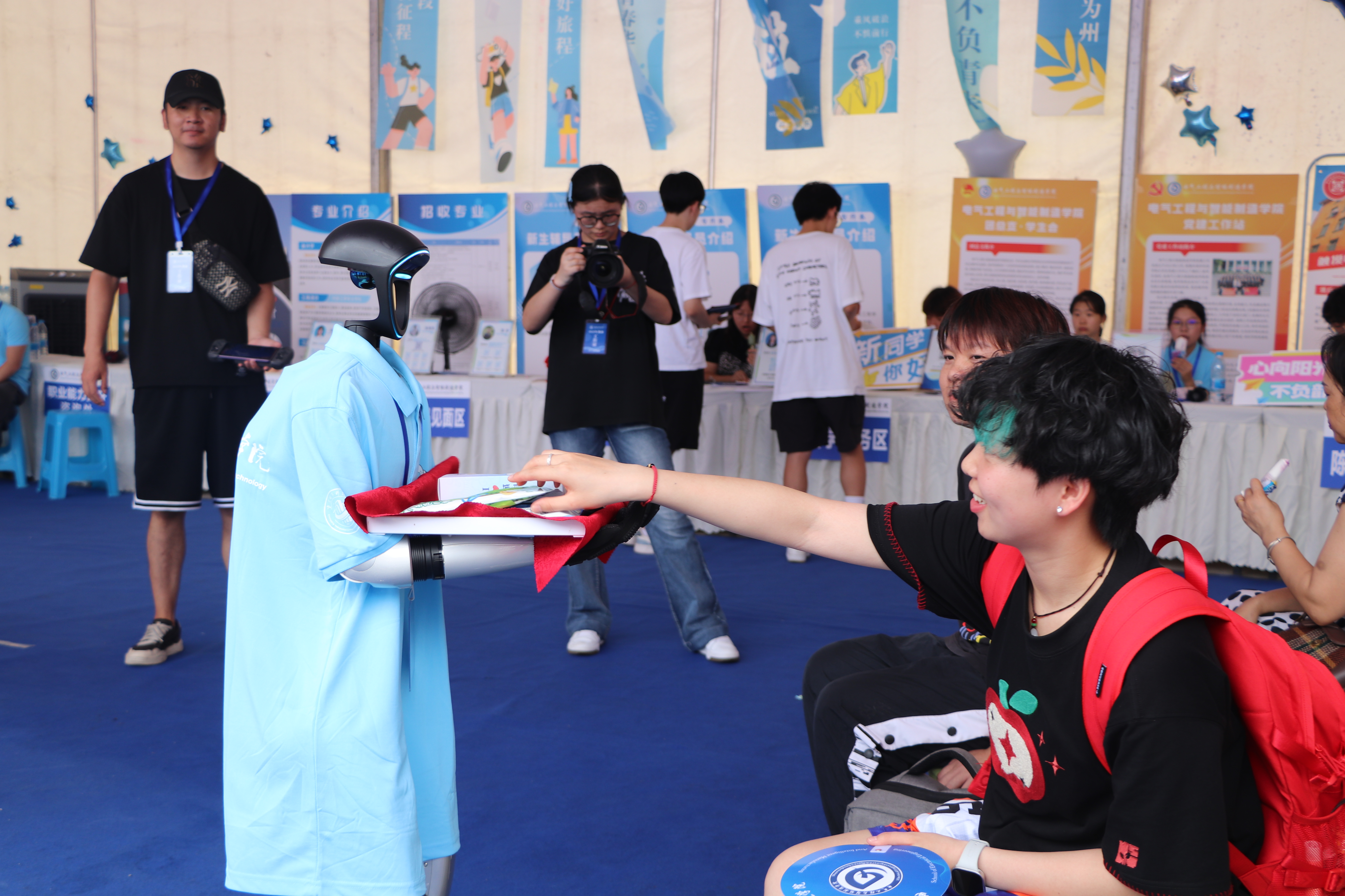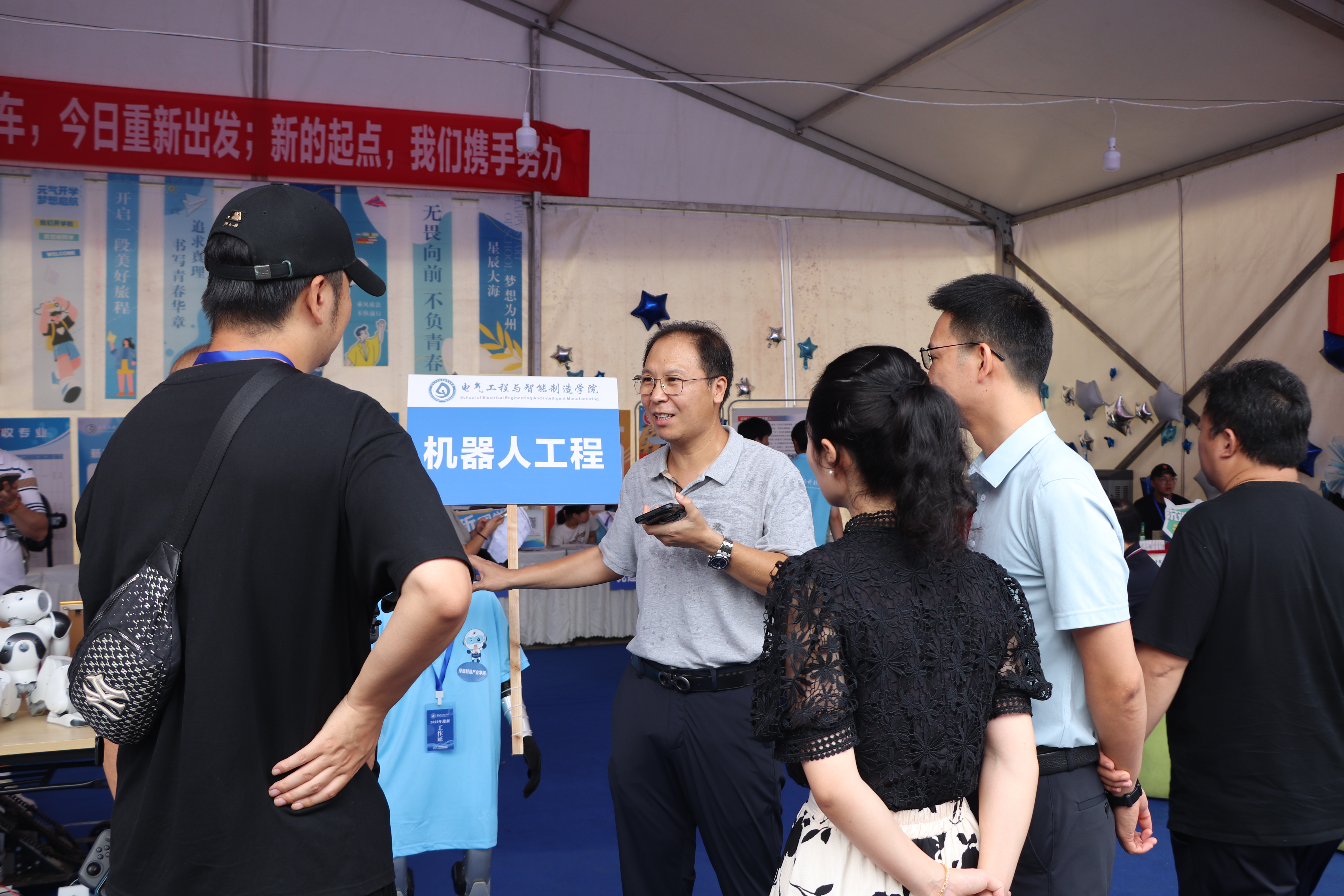 9月3日,伴随着初秋的清爽,电气工程与智能制造学院2025级专升本新生迎新志愿活动正式拉开帷幕。为保障迎新工作高效有序,学院早在9月2日便提前部署志愿力量,完成现场布置与物资筹备。迎新当日,现场处处涌动着热情,身着志愿服装的师生们早早到位、各司其职,从流程梳理到服务分工,前置准备与当日引导无缝衔接,最终用微笑与行动为初入校园、略带陌生感的新生们,打造了一场便捷顺畅又暖意十足的入学体验。 (学院师生提前布置迎新现场) 现场服务:志愿力量护航,领导参与暖人心 迎新首日,学院迎新现场井然有序。身着志愿服装的同学们早早到岗待命,见到新生便主动上前接过沉重的行李箱,一路热情引导他们完成信息登记、报到确认等全流程手续;物资发放区的志愿者则细致核对每一位新生的信息,将钥匙、体检单等物品逐一清点递出,并贴心提醒各项注意事项。此外,现场特别设置的抽奖环节更添热闹氛围,新同学们纷纷驻足参与,脸上洋溢着期待与喜悦。 (引领新同学报到注册) (参与抽取小奖品) 学校及学院领导亦亲临迎新现场指导工作,他们一边细致查看首日迎新工作的推进情况,详细询问新生报到进度与流程衔接细节,一边亲切与新生及家长交流关于校园生活与专业学习的问题,用实际行动让新生刚进校园就感受到浓浓的关怀。 (领导亲临现场) 特色展示:机器人“上岗”迎新,科技赋能添活力 为让新生直观感受学院专业特色与科技魅力,迎新首日,电气工程与智能制造学院特别安排了机器人参与现场服务。这些机器人不仅化身“引导员”,为新生指引报到流程、路线方向、搬运行李箱;还变身“暖心助手”,为完成报到的新生送上文创雪糕,可爱的造型与贴心的服务引得新生与家长纷纷驻足围观、拍照互动。这场别出心裁的科技迎新,既展现了学院在电气工程、智能制造领域的教学实践成果,更让新生对未来的专业学习充满了好奇与期待。 (机器人引领新同学报道注册) (机器人为同学们送上雪糕) (小朋友与机器人互动) 晚间直播:舞蹈表演添彩,线上互动拉近距离 当晚,学院精心策划的迎新主题直播活动。直播伊始,电气工程与智能制造学院院长陈进与党总支副书记李宇共同为屏幕前及现场的新生送上饱含期许的祝福。直播中,学院的特色机器人也惊喜亮相直播间,用趣味互动的方式向新生科普学院专业特色与发展亮点;学院舞蹈队则登台献艺,以活力四射的舞姿、整齐划一的动作点燃现场氛围,为新生送上别样的欢迎礼。此外,主持人还与线上线下的新生积极互动,细致解答入学适应、社团活动等疑问,既拉近了学院与新生的距离,也让未到场的家长得以实时感受迎新的热烈氛围。 (学院领导通过直播送上祝福) (机器人为新生讲解学院特色) (现场直播答疑) (带来精彩表演) 迎新首日的顺利推进,为后续工作打下良好基础。电气工程与智能制造学院将持续以优质服务助力新生尽快适应校园生活,开启专升本阶段的学习新旅程。 文字:朱紫俊、赵若凝轩、李远阳 图片:华昊翔、刘佳丽、赵涛、何国栋、邓其其、张湘缘 编辑:陈星羽 初审:谢欣妤 终审:徐源