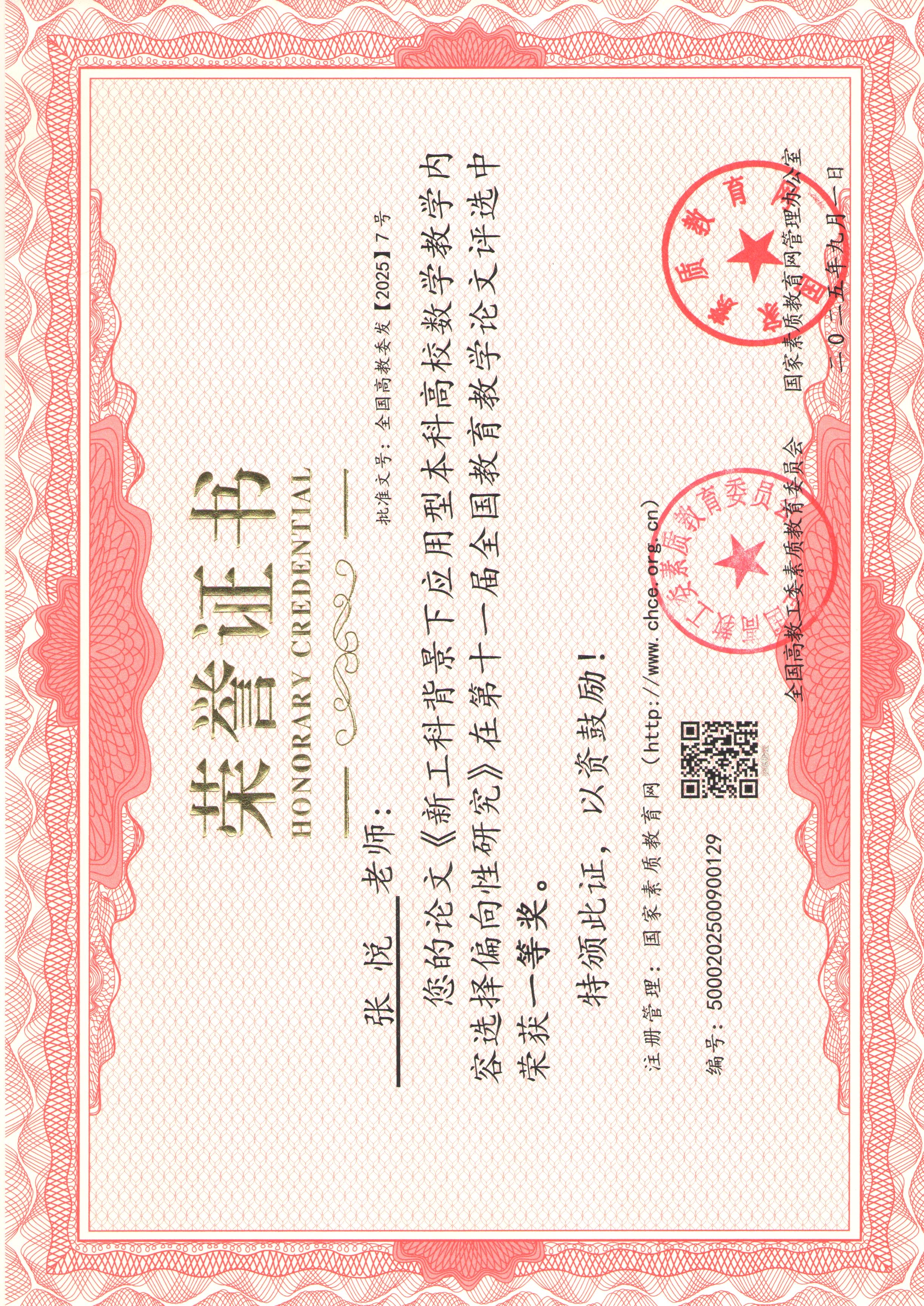 近日,从第十一届全国教育教学论文评选组委会传来喜讯,我校电气工程与智能制造学院数学与物理系专职教师张悦的参赛论文《新工科背景下应用型本科高校数学教学内容选择偏向性研究》荣获一等奖。 本届大赛由全国高教工委素质教育委员会与国家素质教育网管理办公室联合主办,属国家级赛事,旨在交流推广教育教学改革新成果、新经验,评选标准严格,竞争激烈。张悦老师的论文能从众多参赛作品中脱颖而出,荣获最高奖项,充分体现了其扎实的研究功底、敏锐的教育视角和卓越的创新思维。 该获奖论文紧密围绕新工科建设与应用型人才培养的核心需求,深入探讨了应用型本科高校中数学教学内容的优化与改革路径,其研究成果对加强数学与工科专业的交叉融合、提升人才培养质量具有重要的参考价值和实践指导意义。此次获奖不仅是张悦老师个人的荣誉,也是我校长期坚持教学改革、鼓励教师投身教学研究的成果体现,彰显了我校教师队伍的教学科研水平。学校将以此为契机,继续深化教育教学改革,不断提升应用型人才培养质量。 文字:张悦 编辑:陈星羽 初审:谢欣妤 终审:徐源