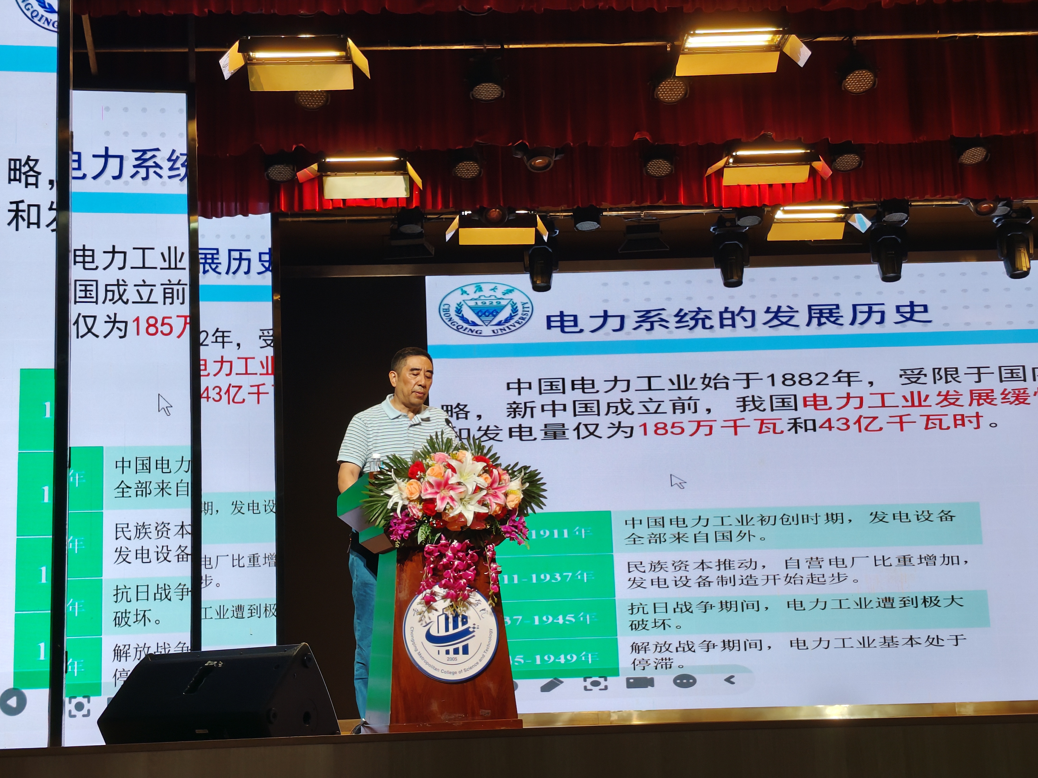 卢继平教授讲解了“新型电力系统的发展及挑战”,介绍了中国电力工业发展历程、当前挑战及未来方向。